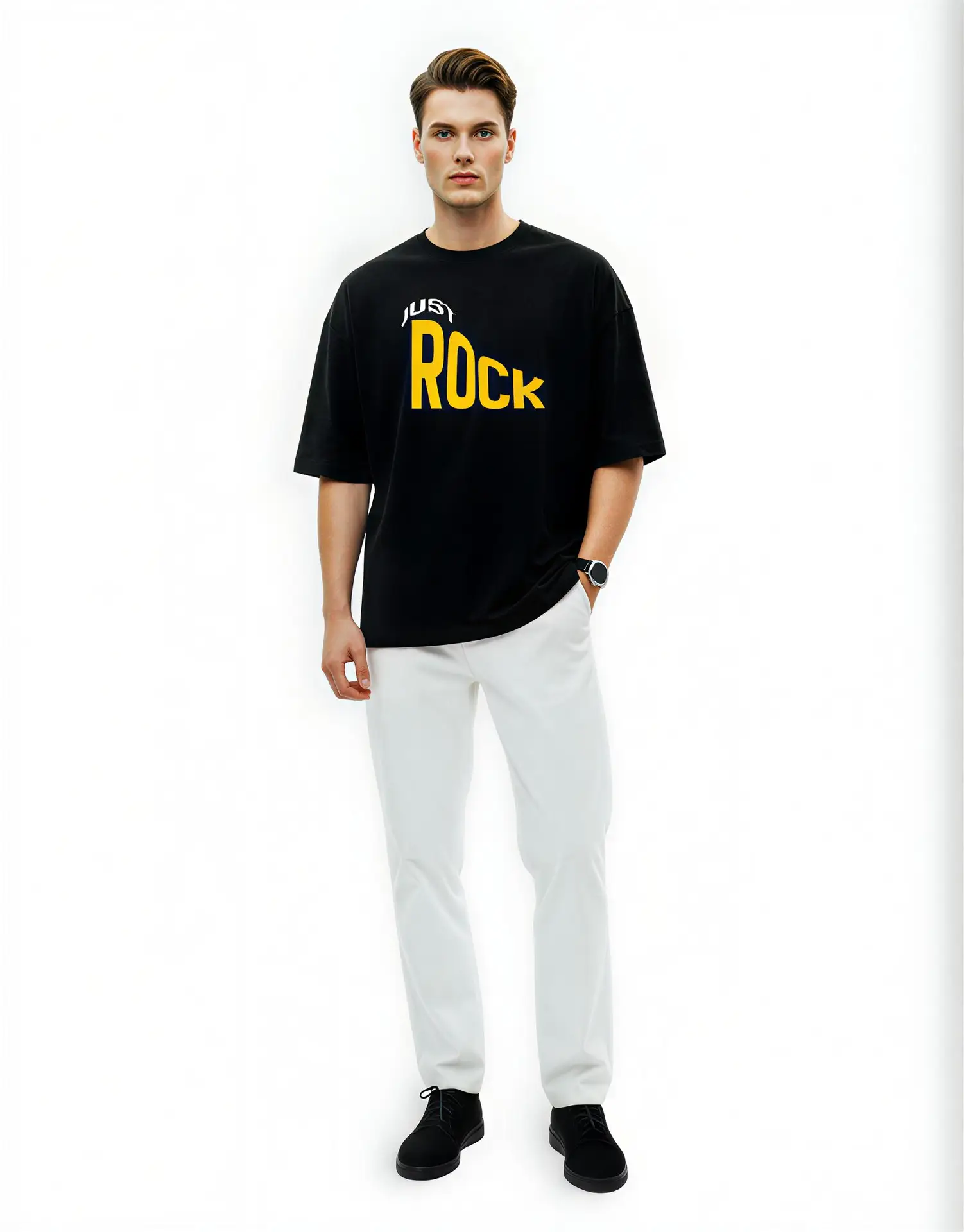 Just Rock Typography Oversized T-Shirt (Men) Turn up the attitude with the Urban Panther Men’s Oversized “Just Rock” Typography T-Shirt.