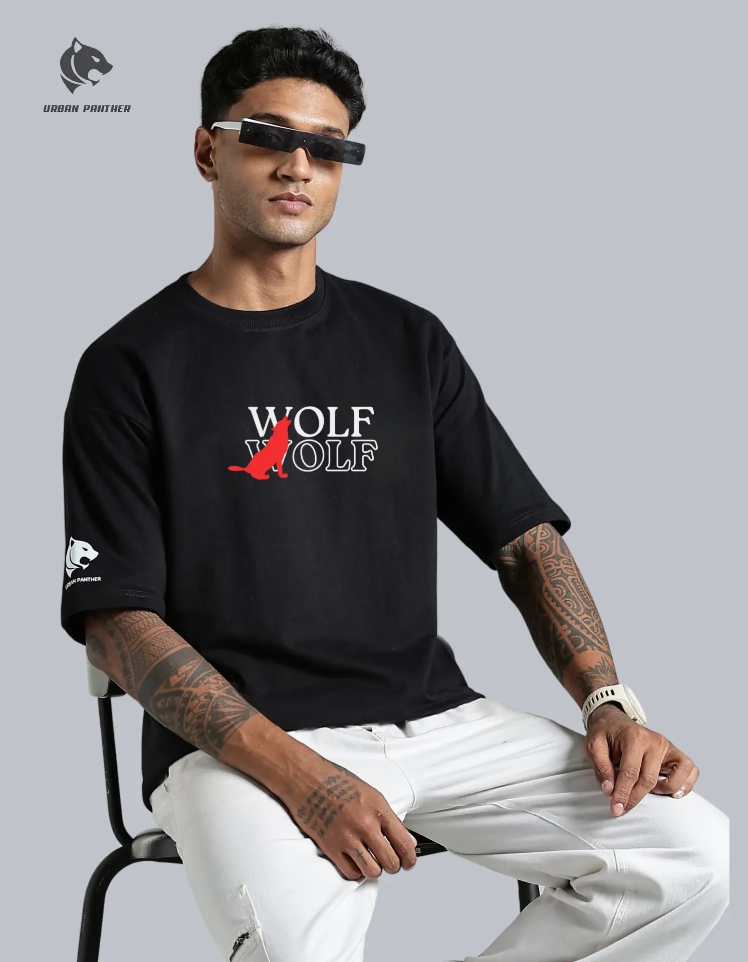 Wolf Oversized T-Shirt for Men Unleash your fearless side with the Urban Panther Men’s Oversized Wolf Design T-Shirt.