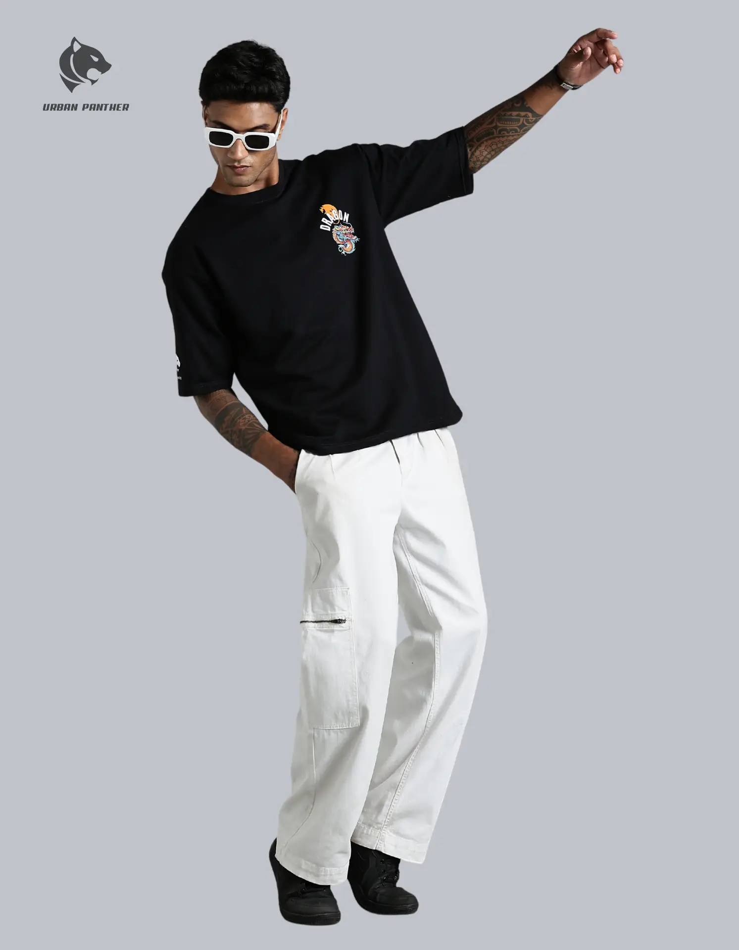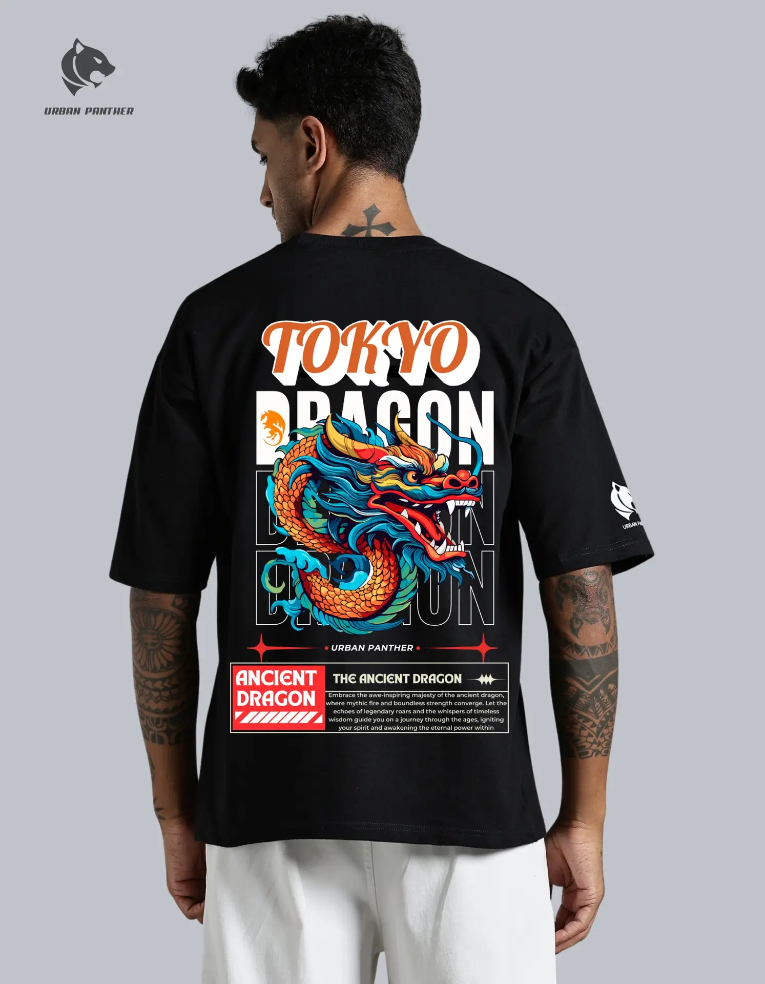 Urban Panther Oversized Dragon Print Tee for Men – Front & Back Graphic